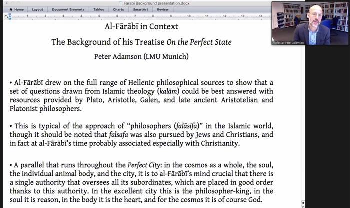Әл-Фарабидің ізгілікті қоғам туралы ілімін талқылауды Людвиг-Максимилиан атындағы Мюнхен университетінің профессоры Питер Адамсон жалғастырды. Кембридж университетінің профессоры Фериэль Бухафа ұлы ғалым философиясындағы жақсылық пен зұлымдықтың онтологиясын талдады. Этнограф және араб музыкасының теориясы жөніндегі маманы, Уэслиан университетінің (АҚШ) профессоры Саида Даукеева Әл-Фарабидің музыканы дамытудағы маңызды рөлі және оның осы бағыттағы зерттеулері мен ғылыми еңбектері туралы әңгімеледі.