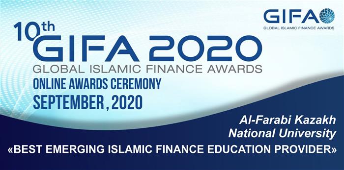 Әл-Фараби атындағы Қазақ ұлттық университеті ислам қаржысы саласындағы білім беруді дамытуға қосқан үлесі мен жетістіктері үшін «Global Islamic Finance Awards 2020» (GIFA) беделді халықаралық марапатына ие болды. Жетекші қазақстандық жоғары оқу орны «Best Emerging Islamic Finance Education Provider» («Исламдық қаржыландыру бойынша білім беру қызметтерінің үздік дамушы провайдері») номинациясында үздік атанды. Марапатты тапсыру рәсімі Исламабад қаласында (Пәкістан) өтті.