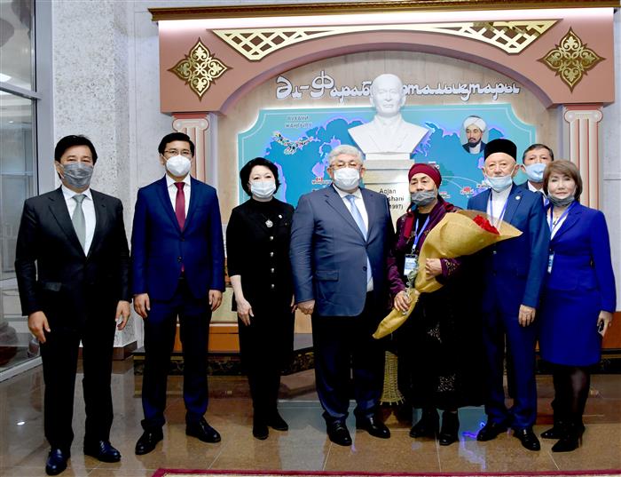 Мемлекеттік хатшыға сонымен қатар мерейтойлық жылы әл-Фараби атындағы Қазақ ұлттық университетінің Қазақстанда және шет елдерде ұйымдастырған және өткізген негізгі оқиғалар мен іс-шараларды қамтитын «Ұлы Даланың Ұлы есімі» фотоальбомы ұсынылды. Сондай-ақ, онда еліміздің жетекші университетінің ұлы ойшылдың рухани мұрасын танымал ету, зерттеу, зерделеу, насихаттау және мәңгі есте қалдыру жөніндегі жобалары мен бастамалары туралы баяндалады. Кітап тек фарабитанушы ғалымдар мен ғылыми қоғамдастықтың ғана емес, сонымен қатар оқырмандардың кең ауқымы үшін де қызықты болады.