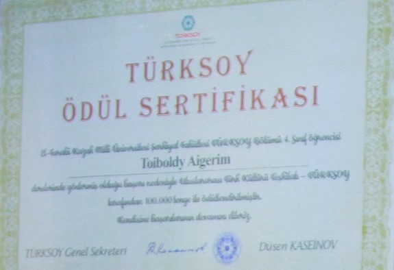 Жүз мың теңге көлеміндегі бір реттік шәкіртақы ТҮРКСОЙ кафедрасының белсенді және ең озат студенттеріне берілді. Жиында сөз сөйлеген ТҮРКСОЙ өкілі әл-Фараби атындағы Қазақ ұлттық университетінің басшылығын соңғы уақыттағы білім беру мен ғылым саласындағы халықаралық деңгейде қол жеткізген жетістіктерімен құттықтап, халықаралық ұйым мен университет арасындағы ынтымақтастықтың бұдан әрі де дами түсетініне сенім білдірді.