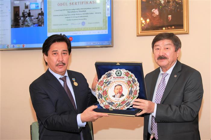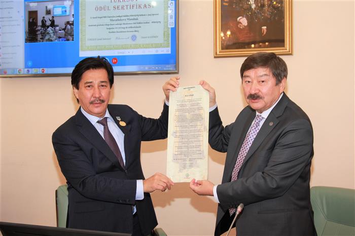 ТҮРКСОЙ халықаралық ұйымының атынан ҚазҰУ ректоры Ғалым Мұтанов Абай Құнанбаевтың 175 жылдығына арналған мерейтойлық іс-шараларды өткізуге қосқан ерекше үлесі үшін медалымен марапатталып, жиын соңында ҚазҰУ ректоры ТҮРКСОЙ ұйымының басшылығына студенттерге көрсеткен қолдаулары үшін ерекше алғысын білдірді.