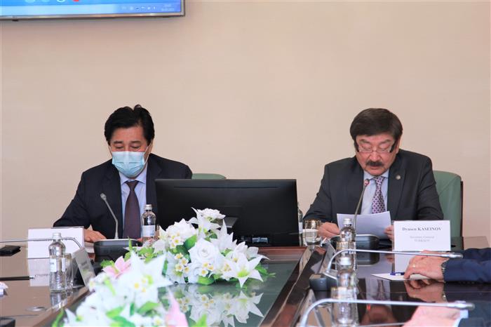 Халықаралық ұйымның Бас хатшысы Дүйсен Қасеиінов ТҮРКСОЙ кафедрасының «Түркітану», «Шетел филологиясы: түрік тілі», «Аударма ісі» мамандықтары бойынша білім алатын студенттерді ынталандыру және әлеуметтік тұрғыдан қолдау мақсатында берілген шәкіртақыны онлайн жиынға арнайы келіп табыстады.