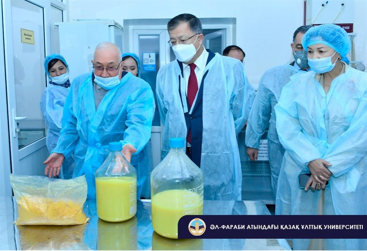 Әл-Фараби атындағы Қазақ ұлттық университетінің Басқарма Төрағасы – Ректоры Жансейіт Түймебаев Микробиология және вирусология ғылыми-өндірістік орталығына арнайы барды. Университет басшысы ауыл шаруашылығы, денсаулық сақтау және қоршаған ортаны қорғауға арналған биологиялық және медициналық препараттармен танысты. Жансейіт Түймебаевтың өндіріске барудағы мақсаты – ғылым саласындағы бірлескен ынтымақтастықты арттыру, жаңа отандық препараттар мен технологияларды жасап шығару және тәжірибе алмасу.
