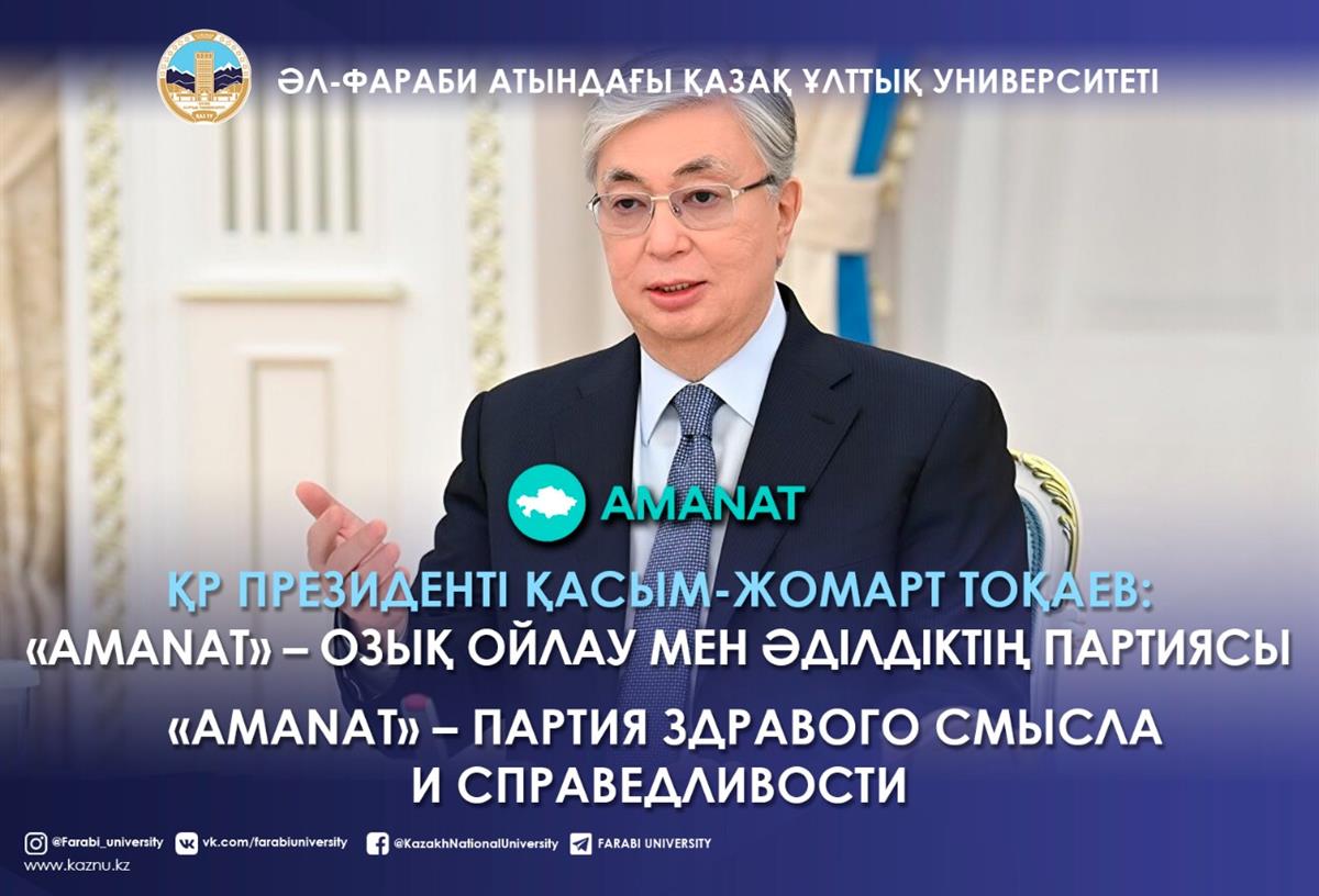 ҚР Президенті Қасым-Жомарт ТОҚАЕВ: «АMANAT» – озық ойлау мен әділдіктің партиясы