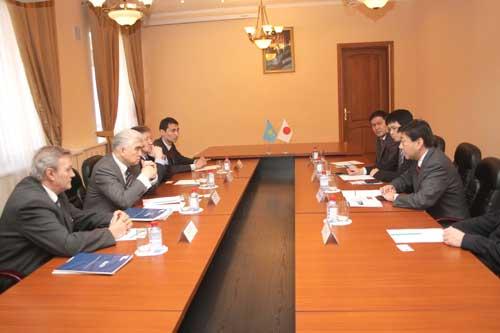Жапон делегациясын ҚазҰУ ректоры академик Б.Т. Жұмағұлов қарсы алды. Содан кейін бірінші проректор З.А. Мансұров және оқу жұмыстары жөніндегі проректор М.К. Орынхановтың қатысуымен көптеген сауалдарға қатысты өзара пікір алмасу өтті.