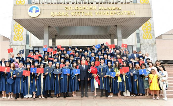 Әл-Фараби атындағы Қазақ ұлттық университетінде түлектерге диплом табыстау рәсімі өтті. Салтанатты жиынды ҚазҰУ-дың Басқарма Төрағасы – Ректоры Жансейіт Түймебаев ашты.