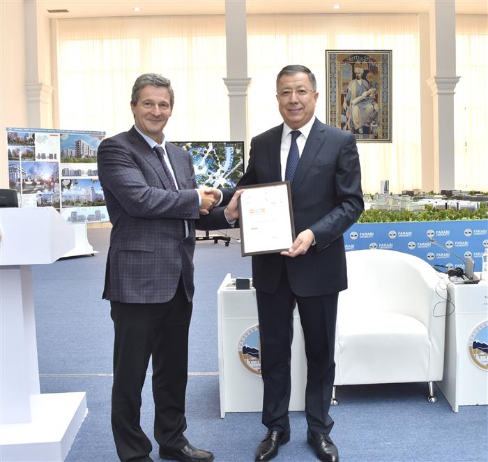 Шара соңында Жансейіт Түймебаев құрметті мейманға Әл-Фараби «Алтын медалін» табыстап, университеттің ғылыми-инновациялық жобаларын таныстырды.