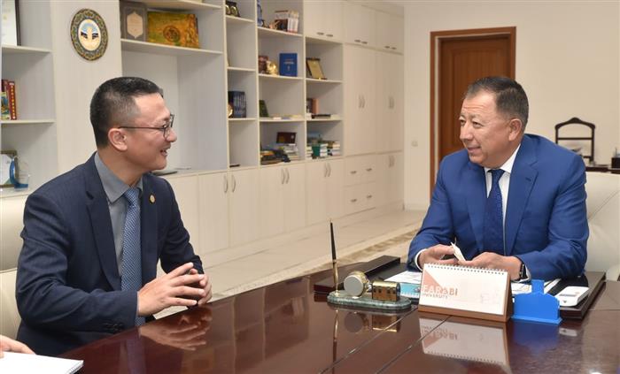 Әл-Фараби атындағы Қазақ ұлттық университетінің Басқарма Төрағасы – Ректоры Жансейіт Түймебаев Huawei Technologies Kazakhstan компаниясының бас директоры Чжао Сюймен кездесіп, бірлескен жобаларды іске асыру мәселелерін талқылады.