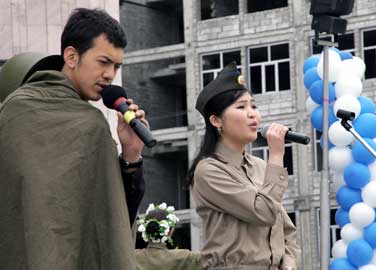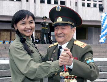 Алматы, 2009 ж. 6 мамыр. Жеңіс Күнінің қарсаңында әл-Фараби атындағы Қазақ ұлттық университеті Ұлы Отан соғысының ардагерлері, тылда еңбек еткен ардагерлер, интернационалист-жауынгерлер, Чернобыль АЭС-дағы апатты залалсыздандыруға қатысқан адамдардың құрметіне салтанатты жиын өткізді.