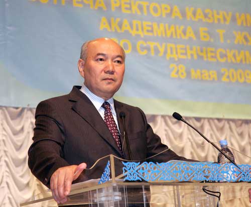 Таяуда Ө.А. Жолдасбеков атындағы Студенттер сарайында әл-Фараби атындағы Қазақ ұлттық университетінің ректоры студенттермен жүздесті. жөнінде бір ай бұрын айтылып қойғандықтан ректор мен студенттер кездесуге аса мән қойып дайындалды. Осыдан бір жыл бұрын мамыр айында өткен жиында ректор студенттермен бірінші рет бас қосып, тілек-талаптарын ескерген болатын. Сондықтан аталмыш жиын ректордың бір жыл ішінде жасалған жұмысының есебі десек те болады. Былтырғы жиыннан кейін университеттің Жастар комитеті мекемесі «Ректорға сауалыңды қой!» ұранымен бірнеше акцияларды өткізді. Осы кездесуге арналған сауалдарды студенттер бір ай бұрын университет сайты мен ректордың жеке «электронкасына» жіберді.