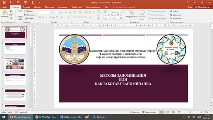 2021 жылдың 7 желтоқсасында №5 жатақханада «Методы запоминания