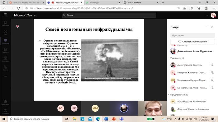 Молекулалық биология және генетика кафедрасының «5В060700-Биология» мамандығының 4 курс студенттерімен интранет жүйесіндегі кафедраның базалық және таңдамалы пәндерімен таныстыру жұмыстары жүргізілді. «5В060700-Биология» мамандығының 4 курс студенттерімен куратор – эдвайзері Әліқул Айжан Қазақстан Республикасы Тәуелсіздігінің 30-жылдығына орай «Ядролық қаруға жол жоқ!» тақырыбында іс-шара өткізілді. Осы тақырып бойынша баяндама жасалды, студенттер өз ойларымен бөлісті. Ядролық аурудың кесірінен пайда болатын ауруларға шолу жасалды.