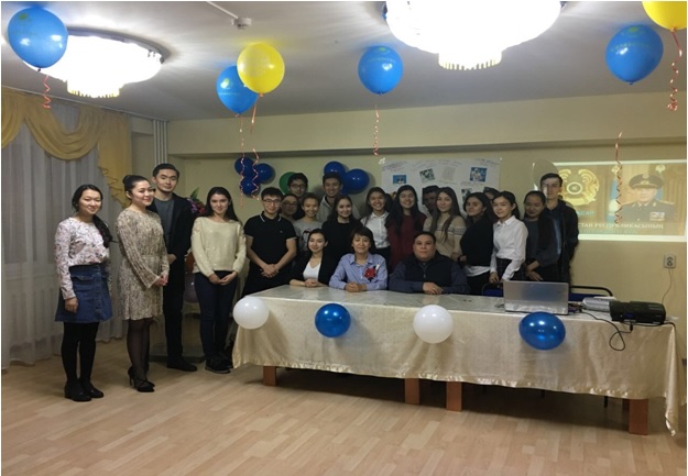 "1 желтоқсан - ҚР Тұңғыш Президенті күні!"атты мәдени шара | 30.11.2017 | «Айналаңды нұрландыр» жобасы аясында 2017 жылы 30 қараша күні сағат 18.30 аймақтану мамандығының 1-2-3 курс студенттерінің қатысуымен ҚР Бірінші Президенті күніне орай ұйымдастырылған "1 желтоқсан - ҚР Тұңғыш Президенті күні!"атты мәдени шара өткізілді. Ұйымдастырушылар: доц. Чукубаев Е.С., доц.Алипбаев А.Р., Бюжеева Б.З. | ![]() |