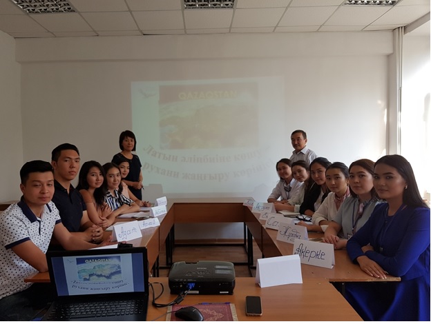 “Айналаңды нұрландыр” жобасы аясында Жас дипломаттар клубының ұйымдастыруымен «Латын әліпбиіне көшу - рухани жаңғыру көрінісі» атты дөңгелек үстел 2017 жылдың 20 қыркүйек күні әл-Фараби атындағы Қазақ Ұлттық университетінің халықаралық қатынастар факультетінде өткізілді. Оқытушылар, магистранттар мен студенттер шақырылды. Ұйымдастырушылар: доцент Әліпбаев А. Р., Бюжеева Б.З., Оңдаш А. |
