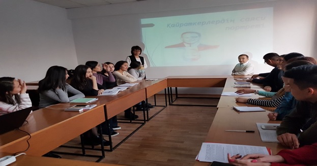 “Айналаңды нұрландыр” жобасы аясында халықаралық қатынастар факультетінде 2017 жылдың 22 қараша күні Жас дипломаттар клубының ұйымдастыруымен «Қайраткерлердің саяси портреті» атты дөңгелек үстел өткізілді. Дөңгелек үстелге аймақтану мамандығының 2-3 курс студенттері қатысты. Ұйымдастырушылар: Жас дипломаттар клубы, доц. Бюжеева Б.З., Әліпбаев А.Р.