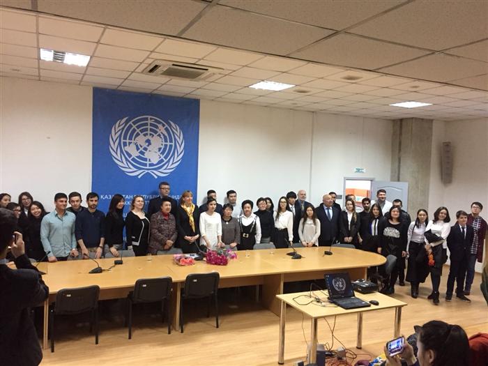 | Әл-Фараби атындағы ҚазҰУ халықаралық қатынастар факультетінің БҰҰ-ның аймақтық ресурстық орталығы Қазақстанның БҰҰ-ға қосылуының 26 жылдығына және Ұйыммен ынтымақтастығының 25 жылдығына орай БҰҰ-ның қоғамдық ақпарат департаменті ұйымдастырған іс-шарада