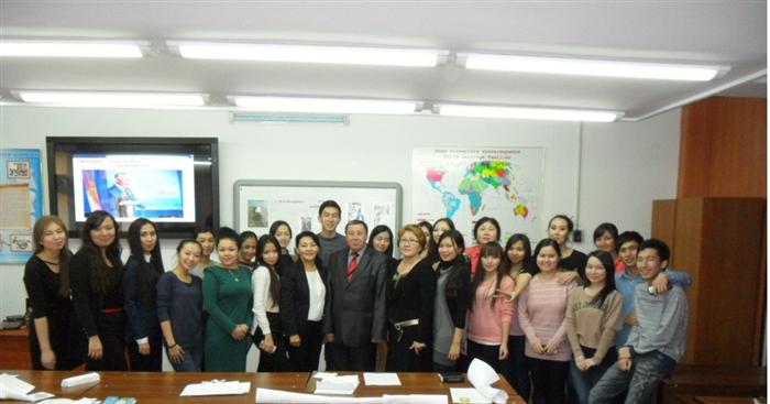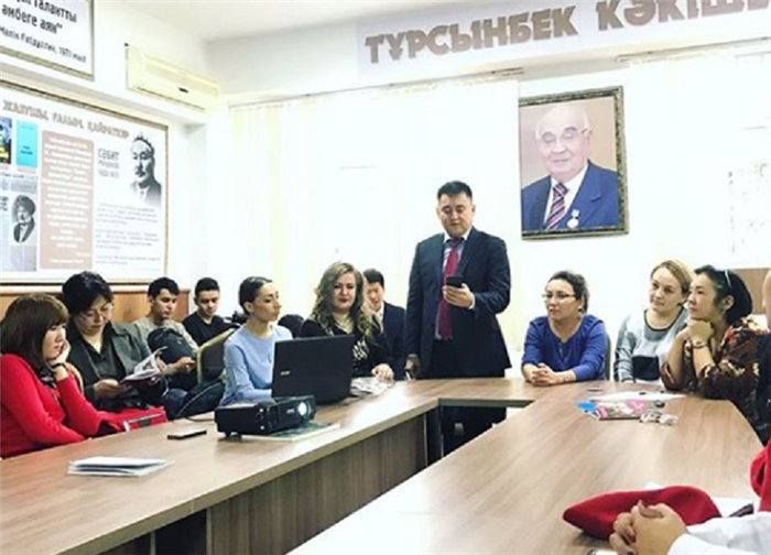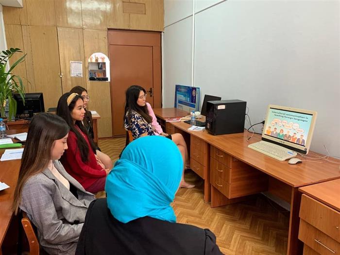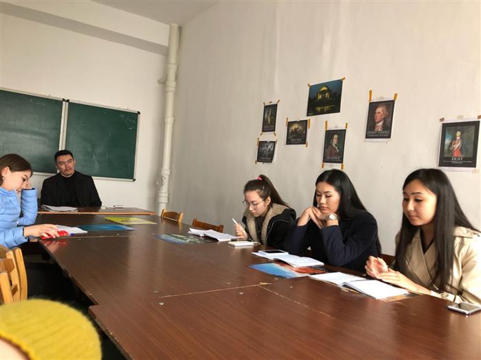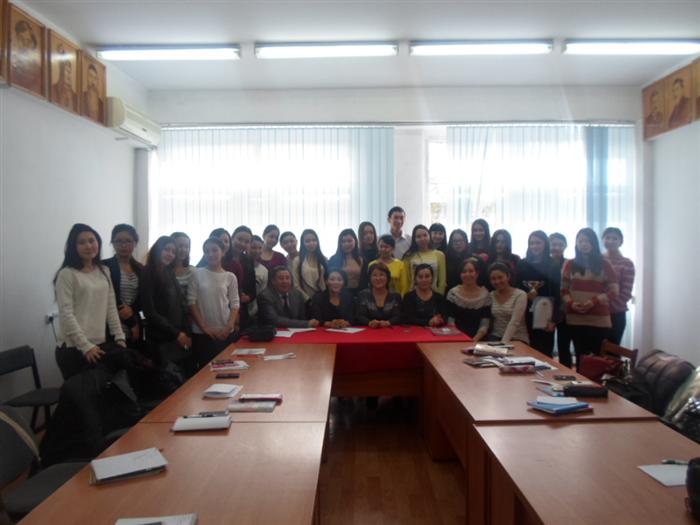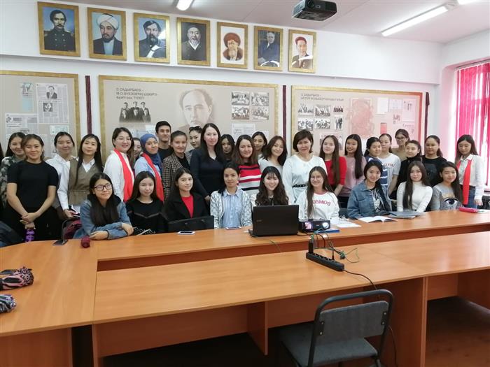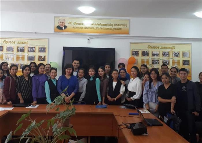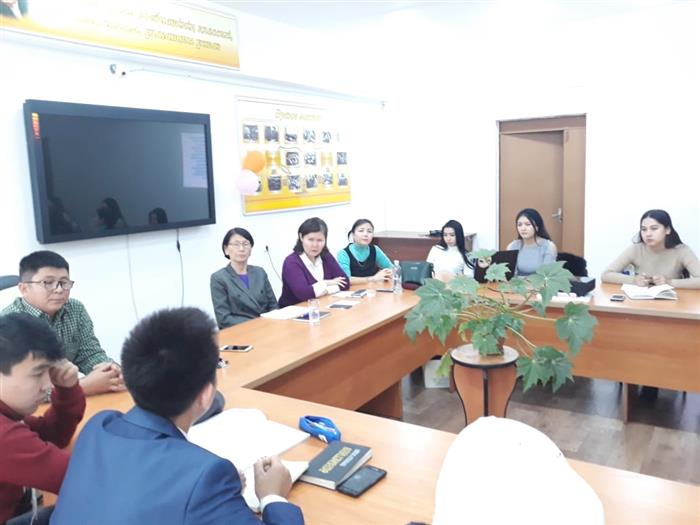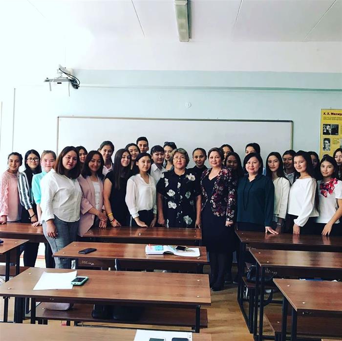 | «Болашаққа бағдар: рухани жаңғыру» жобасы аясында шетел филологиясы және аударма ісі кафедрасы профессор Г,Қ.Қазыбек, орыс филологиясы мен әлем әдебиеті кафедрасының оқытушысы А.Қ.Қазыбек және шетел филологиясымамандығының 2 курс магистранты Е.Е. Қоныс аударма ісі студенттерімен бірлесе отырып 18 қыркүйек күні «Шет тілін үйренудегі мәдениет аралық коммуникация» деп аталатын тақырыпта мәдени іс-шара өткізді |