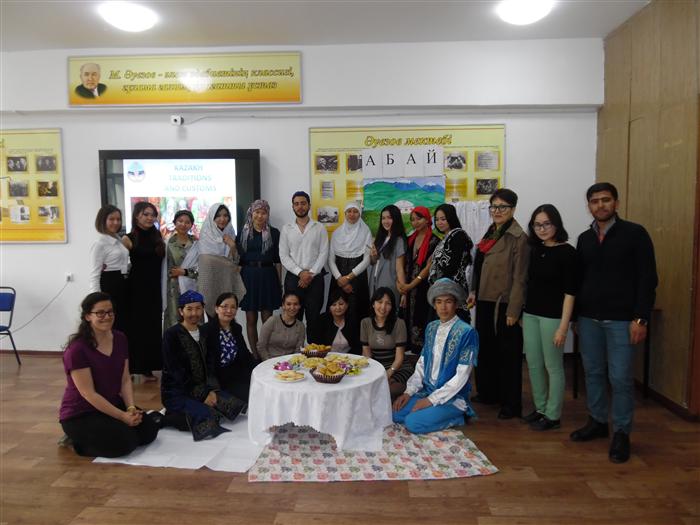 22 сәуір - Жастар ынтымақтастығының халықаралық күні 2016 жылының 22 сәуір күні филология және әлем тілдері факультетінің шетел филологиясы және аударма ісі кафедрасының оқытушылары Р.М. Таева, Ш.М. Макатаева, А.Т. Алимбаева және М.А. Жаңабековалардың ұйымдастыруымен «Айналаңды нұрландыр» жобасы аясында Жастар ынтымақтастығының халықаралық күні құрметіне арналған «Қазақ халқының салт-дәстүрлері – Customs and Traditions of Kazakh people» атты ағылшын тілінде мерекелік кеш өткізілді. |