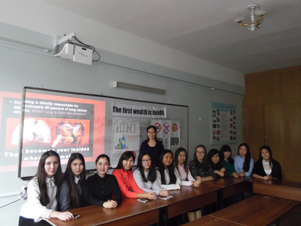 Зиянды дағдылармен күресу – денсаулық кепілі 29 Қазан 2015 жыл Филология және әлем тілдері факультетінің шетел филологиясы және аударма ісі кафедрасының ұжымы «Саламатты дене мәдениеті» жобасы аясында «Зиянды дағдылармен күресу – денсаулық кепілі» тақырыбындаағылшын тілінде тәрбиелік кеш өткізді. |