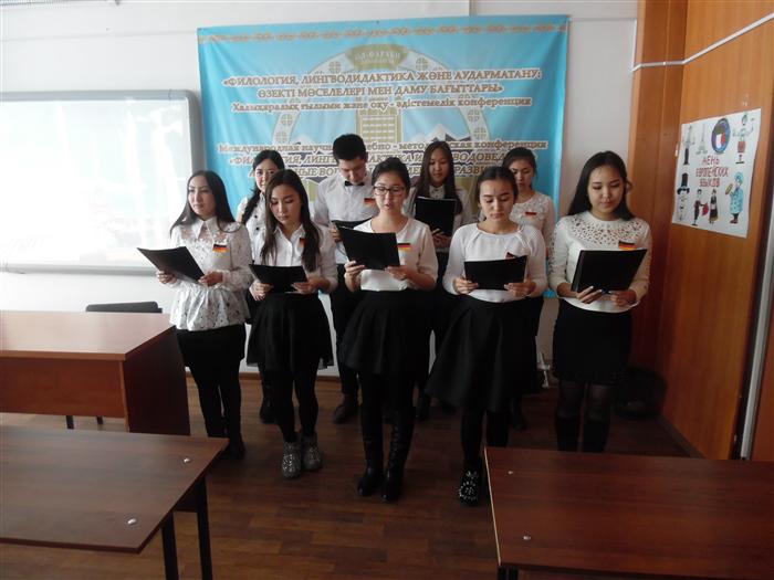 | Әл-Фараби атындағы Қазақ ұлттық университеті филология және әлем тілдері факультеті Шетел филологиясы және аударма ісі кафедрасының «Шетел филологиясы» мамандығының ұйымдастыруымен өтетін «Рухани жаңғыру» бағдарламасы аясында «Тіл тірегіміз, соғып тұрған жүрегіміз»атты танымдық кеші болып өтті! |
