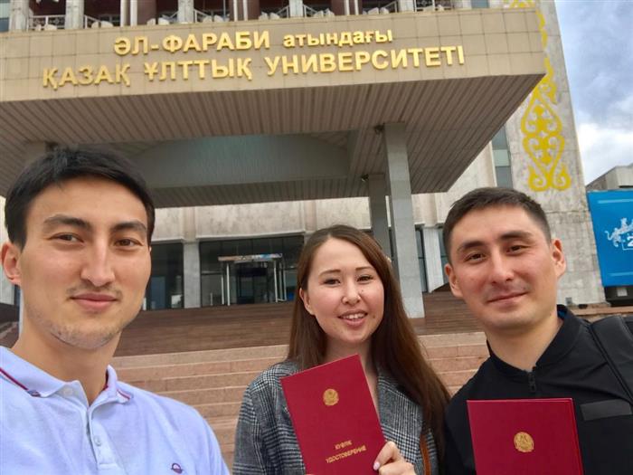 Шетел филологиясы мамандығының 3 курс студенттері Халықаралық "Фараби оқулары" байқауында жүлдели II және III орындармен марапатталған студенттері. Солдан оңға қарай Ақылбек Айдана II орын, Амиралина Амина III орын, Рамазанова Акмарал III орын. Жеңістеріңіз құтты болсын, алар асуларың көп болғай! Ұстаздарың Гүлсима апайларыңның сенімін ақтаңыздар! |