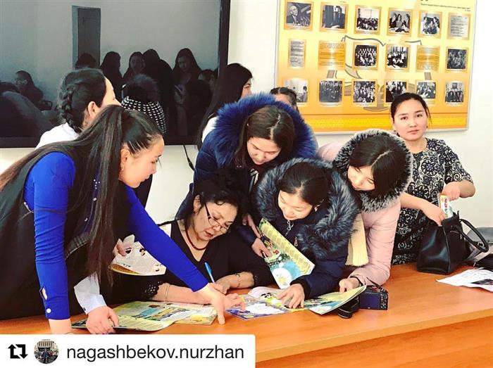 2018 жылдың 2 қарашасы «Айналанды нұрландыр! жобасы аясында Филология және әлем тілдері факультеті Шетел филологиясы және аударма ісі кафедрасы «Аударма ісі» мамандығының студенттерімен бірге 2 курс студенттеріне арналған Джулия Кацманның жаңа кітабын ұсынды. «Айлендранс ньюрлейт!» Жобасының шеңберінде Жауапты оқытушылар: Мұсалы Л.Ж., Қазыбек Г.Қ., Қазыбек А.Қ. |
