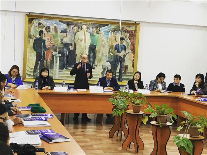 «Тіл туралы ғылым және ғылым тілі» 2018 жылдың 6 сәуірі күні кафедрамыздың ұйымдастыруымен ф.ғ.д., профессор Элеонора Дүйсенқызы Сүлейменованың ғылыми-педагогикалық қызметіне арналған «Тіл туралы ғылым және ғылым тілі» атты ғылыми-практикалық конференция өтті. Аталмыш іс-шара 2017 жылдың қыркүйек айында ҚР Ұлттық академиялық кітапханасы базасында Қазақстан халқы Ассамблеясы Ғылыми-эксперттік кеңесінің қамқорлығымен бастау алған «Дәуір және Тұлға» атты шекті симпозиум семинарлары аясында ұйымдастырылды. |