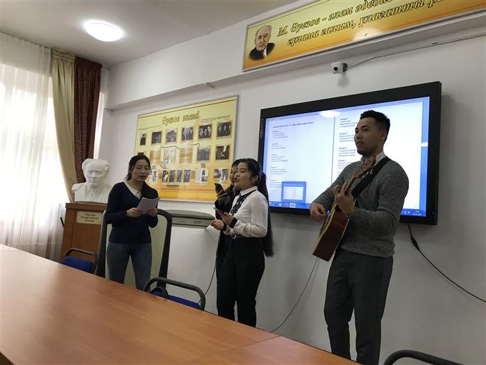 Есіңе мені алғайсың… Филология және әлем тілдері факультетінің шетел филологиясы және аударма ісі кафедрасының оқытушылары «ҚазҰУ студенті оқуы тиіс 100 кітап» жобасы аясында ақын М. Мақатаевтың 85 жылдық мерей тойы құрметіне арналған "Есіңе мені алғайсың" атты әдеби-сазды кешін ұйымдастырды. |