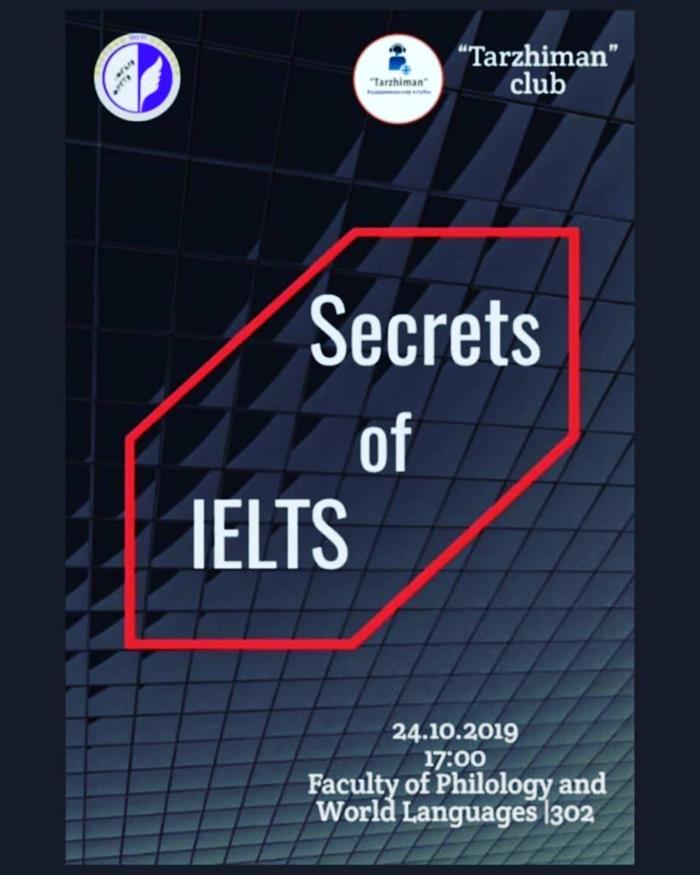 Барлықтарыңызға сәлем! Сіздермен "Тәржіман" аудармашылар клубы. Біз туралы әлі естіген жоқсыз ба? Онда дұрыстаймыз! Біздің клуб сізді қызықтыратын жоба ұйымдастырып жатыр. Ол "Secrets of IELTS" деп аталады. Біздің спикерлер IELTS емтиханының қыр-сырын айтып береді. Ода тек кіріспе ғана емес,сонымен қатар *reading*, *listening*, *writing* бөлімдеріне кішігірім дайындық болады және бұның барлығы қызықты форматта өткізіледі. Сіздер,біздің қадірлі студенттер, демалып, құнды ақпарат алу үшін біз пайдалы нәрсені қызықты форматта көрсетеміз. Біз ескі салтты жаңартып,сіздер бізбен болу үшін клубқа жаңа дем берудеміз. Достарыңызбен бірге келіп,уақытты тиімді пайдаланып,керемет сезімдерге ие болыңыздар Күні:24 қазан,2019 ж. Уақыты:17:00 Өтетін жері: филология және әлем тілдері факультеті|302-аудитория. Барлықтарыңызды күтеміз! |