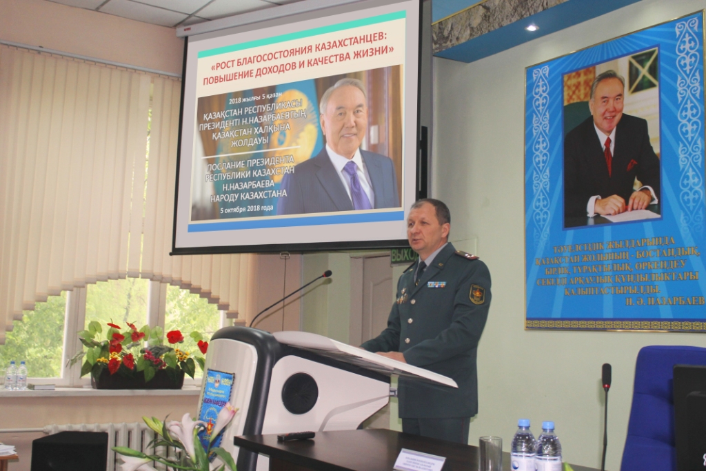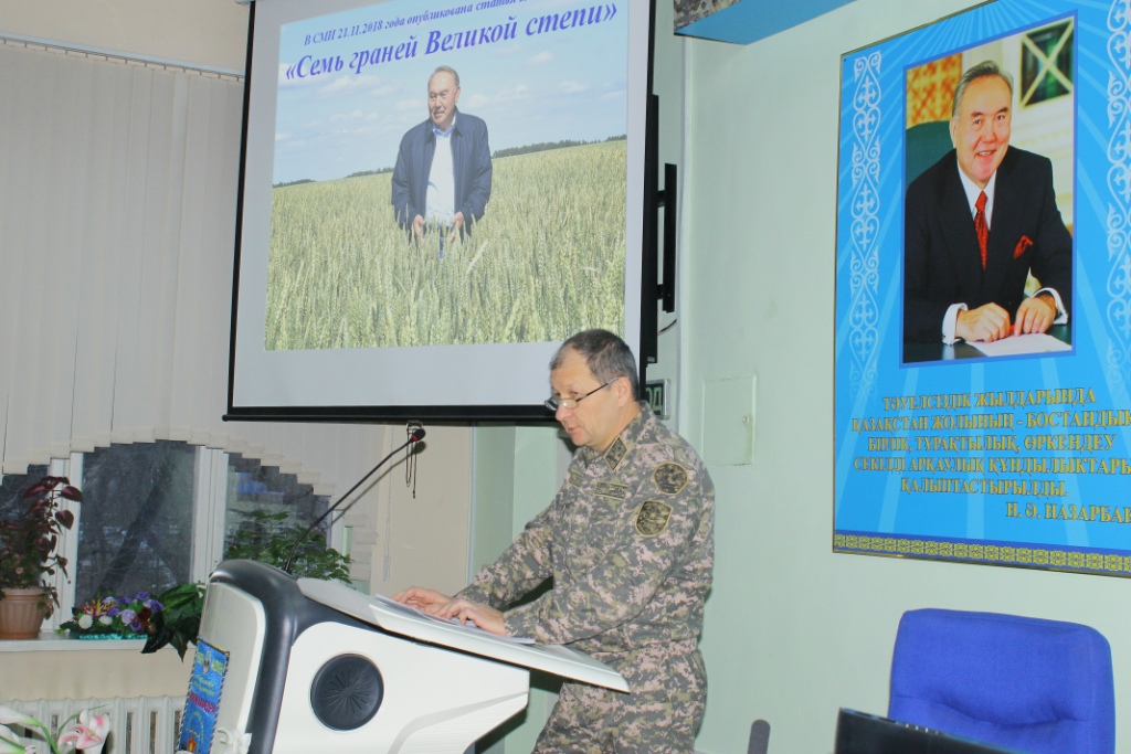 23.11.201823 ноября 2018 года на военной кафедре Казахского национального университета имени аль-Фараби с профессорско-преподавательским и учебно-вспомогательным составами проведено обсуждение статьи Главы нашего государства Н.А.Назарбаева "Семь граней великой степи".