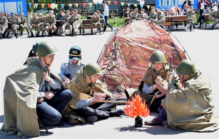 Патриотическая игра состояла из различных конкурсных задач включающих в себя творческий конкурс, в ходе которого участники представляли номера художественной самодеятельности военной тематики. На конкурсе "Колесо истории" старшеклассники отвечали на вопросы о истории нашего государства, о выдающихся героях казахстанцах, о вкладе Казахстана в Победу в Великой Отечественной войне. Также участники игры выполняли стрельбу в интерактивном лазерном тире, состязались в меткости в дартсе и выполнении силовых упражнений по физической подготовке.