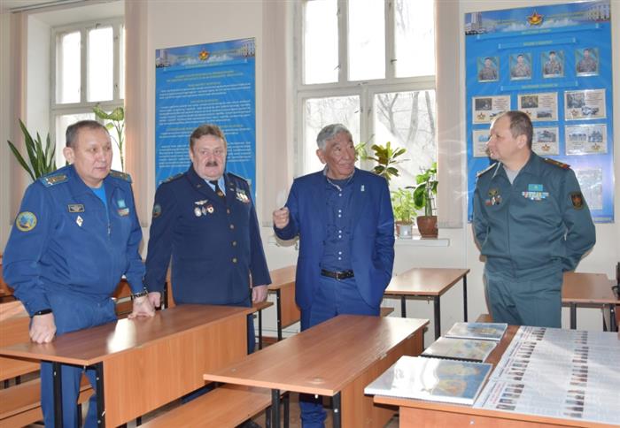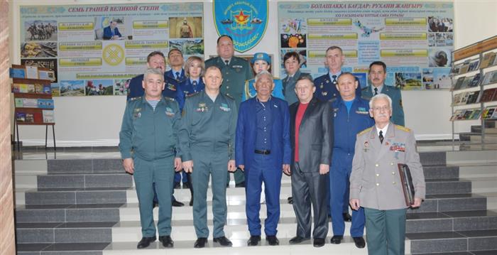 В мероприятии приняли участие ветераны Вооруженных Сил - первый начальник управления воспитательной и социально правовой работы МО РК полковник в отставке Шампиев Мэлис Джуманович, член ассамблеи народа Казахстана полковник в отставке Мамсуров Казбек Владимирович.