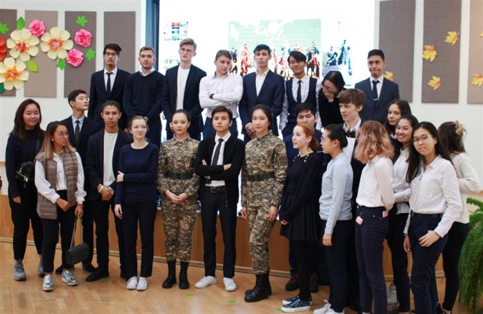 В преддверии двух знаменательных праздников – Дня первого Президента и Дня государственной независимости Республики Казахстан 20 ноября 2019 года студентки военной кафедры, обучающиеся по военно-учетной специальности «Военная журналистика» под руководством преподавателей провели лекторий «Я патриот Казахстана». Структурно лекторий состоял из двух частей. В первой части будущие военные журналисты для старшеклассников провели уроки «Как быть патриотом своей Родины», в ходе которых, было рассказано о ценностях казахстанского общества, а также угрозах и вызовах нашей независимости.