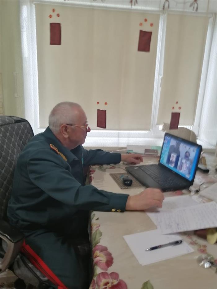 В ходе видеоконференции заслуженный ветеран рассказал о становлении казахстанской армии, о особенностях воспитательной работы командиров всех степеней по успешной организации учебно-боевой деятельности. Участники конференции, студенты Тургумбаев Маргулан, Адильханов Мадияр, Жаилканова Аружан и Жаксылыков Максат задали интересные вопросы не только о особенностях воинской службы, но и о историческом значении наступающего Дня Великой Победы и Дня Защитника Отечества, на которые получили исчерпывающие и содержательные ответы генерала.