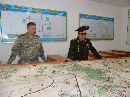 Генерал-майор Рыспаев А.Н.проверил новый учебно-лабораторный корпус военной кафедры, учебно-тренировочный полигон мотострелковых войск, стрелковый тир и другие объекты учебно-материальной базы кафедры.
