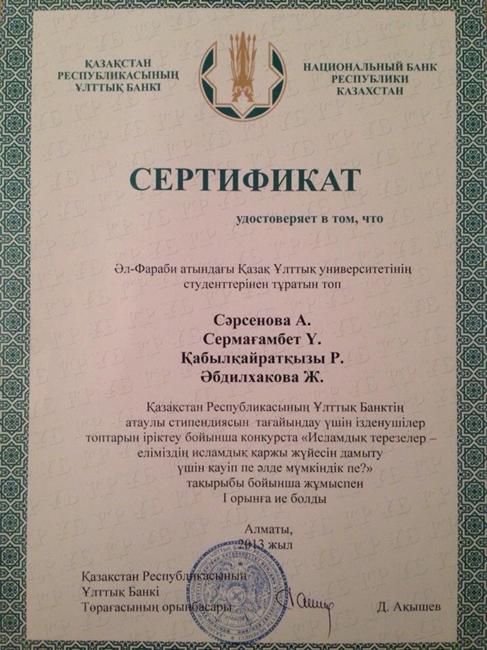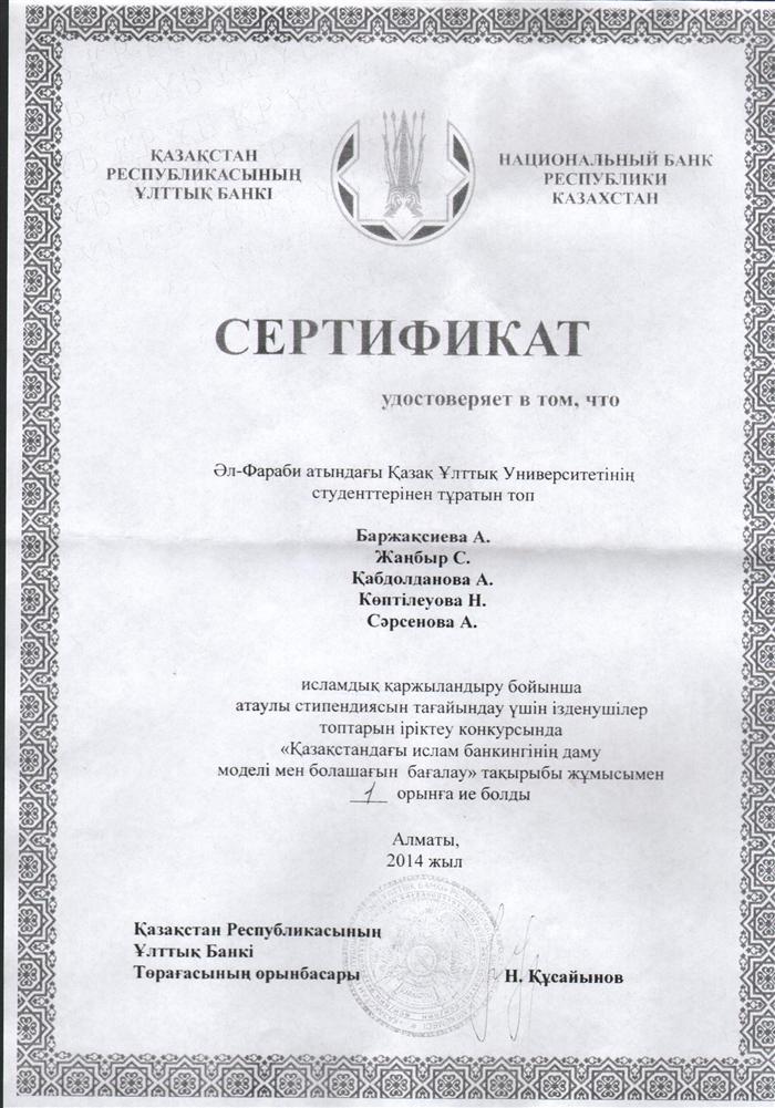 Конкурс по отбору исследовательских групп для присуждения именной стипендии Национальго банка РК по исламскому финансированию Октябрь 2014 г. |
