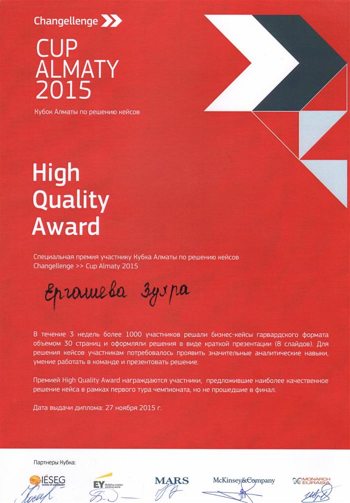 Студентка 3 курса специальности "Экономика" Ергашева Зухра получила специальную премию участника Кубка Алматы по решению кейсов «Changellenge 2015» Ноябрь 2015 г. |