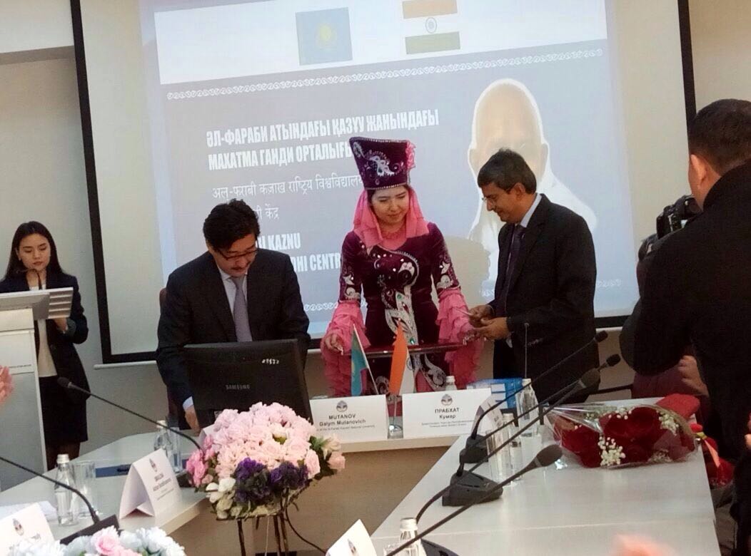 Ректор Казахского национального Университета имени аль-Фараби Мутанов Галымкаир Мутанович а также Чрезвычайный и Полномочный Посол Республики Индия в Республике Казахстан господин Прабхат Кумар торжественно провели открытие центра Махатма Ганди.