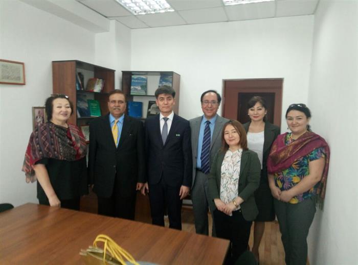 06 Апреля 2018 года Чрезвычайный и полномочный посол Республики Пакистан господин Абдул Салих Кхан, а также Второй Секретарь представительства Республики Пакистан в Алматы господин Басит Салим Шах со своим помощником Манасом Карибаевым нанесли свой первый визит на факультет востоковедения Казахского Национального Университета имени аль-Фараби. Декан факультета востоковедения доктор PhD Ыктияр Палторе оказал теплый прием пакистанской делегации, целью которой было возобновление пакистано-казахстанских отношений в сфере образования, науки и культуры. В рамках пакистано-казахстанского сотрудничества также необходимо было возобновить ранее заключенный договор между КазНУ имени аль-Фараби и Национальным Университетом имени Каид Азама в городе Исламабад, Пакистан.