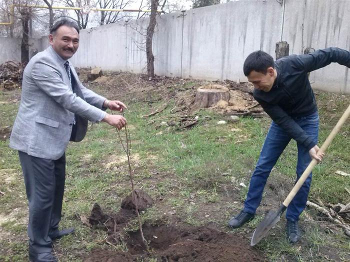 В рамках проекта «КазНУ Гринкампус», озеленение прилегающей территории ЦВИАРН. |