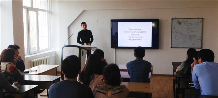 1) Доклад магистранта Сарманова А.С. на тему «Экономическая полезность от вступления в Евразийский Союз»;