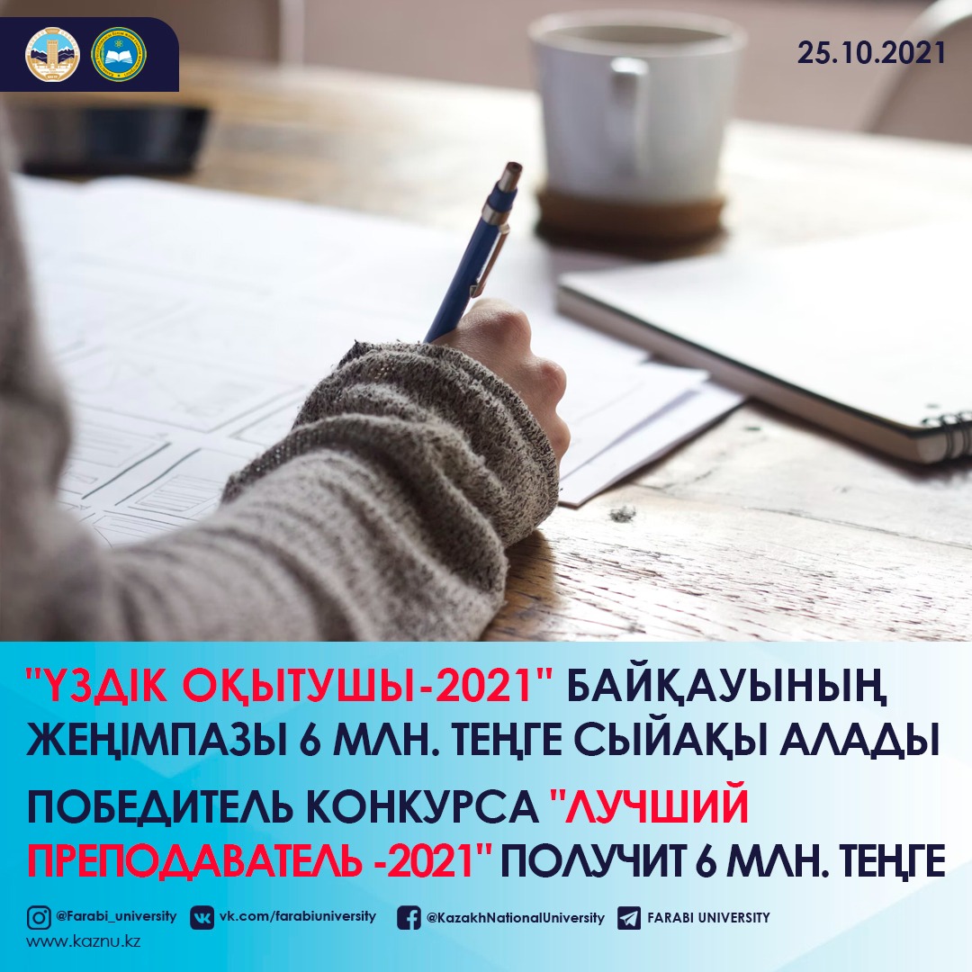 ОКОЛО 6 МИЛЛИОНОВ ТЕНГЕ ПОЛУЧИТ ПОБЕДИТЕЛЬ РЕСПУБЛИКАНСКОГО КОНКУРСА «ЛУЧШИЙ ПРЕПОДАВАТЕЛЬ ВУЗА - 2021»