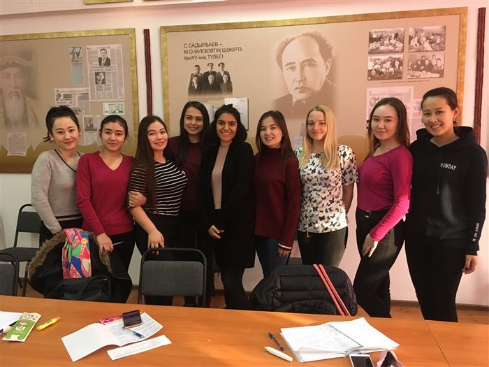 С мая по октябрь 2017 года по программе Эрасмус Мундус на базе кафедры проходила стажировку докторантка из Университета Барселоны (Испания) Инма Сальседо. Тема исследования - Автобиографии испанских военных ХVI-XVII веков. В Казахстане осуществлялась подготовка раздела, посвященного пребыванию испанских дипломатов в Средней Азии.