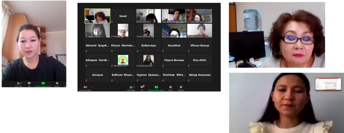 Следующее поздравительное слово произнес президент Ассоциации выпускников КазНУ им. Аль-Фараби К.А. Мами. Вслед за ним свои искренние пожелания высказали преподаватели кафедры Жибек Уахитовна и Маншук Кудайбергеновна. Выпускники выразили свою благодарность в ответ на теплые пожелания преподавателей. Выпускниками, не имевшими возможности присутствовать были записаны видеопоздравления. Помимо видеовстречи, история нашей кафедры была также показана на голубом экране.