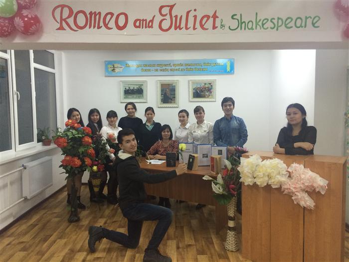 В ходе мероприятия Уразгельдиева Д. показала презентацию, посвященной биографии Шекспира. Представив себя Шекспиром, сидя за столом Тастан Ш. прочитал сонету 154. Также Султан Ш. представил книжную вставку. Бейсен Ш. представила презентацию о произведении Ромео и Джульетта и видео ролик. Ниязбек Г. подготовила викторину и раздавала конфеты за каждый правильный ответ. Сагындыков Ш. и Сабитова С. сыграли сцену на балконе из произведения Ромео и Джульетта.