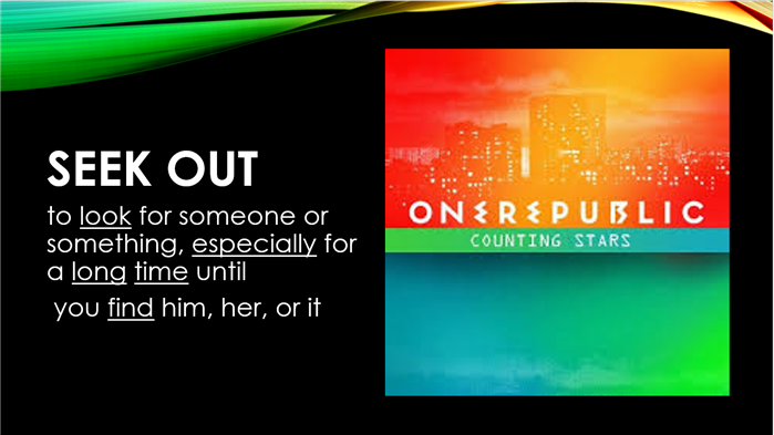 Песня Counting Stars о том, что надо перестать придавать слишком много значения материальным ценностям, и начать ценить саму жизнь. В песне много интересных выражений, которые можно взять на вооружение и употреблять. Ребята поделились своими впечатлениями о песне.