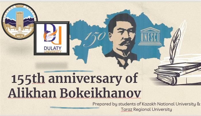 6 апреля 2021 года старший преподаватель кафедры иностранных языков КазНУ Момбекова Н.Б. провела образовательное мероприятие, посвященное 155-летию Алихана Бокейханова, на платформе Zoom со студентами первого курса КазНУ и Таразского Регионального университета. Целью данного мероприятия является популяризация исторических подвигов лидера Алаша, государственного деятеля Алихана Бокейхана, повышение творческих способностей, патриотических чувств, уважения к историческим личностям, служившим делу независимости, повышение интереса к изучению и усвоению творчества Алихана Бокейхана. Студенты обоих университетов подготовились к уроку на высоком уровне и внесли свой вклад. Хочу поблагодарить студентов КазНУ и первокурсников Таразского Регионального университета.