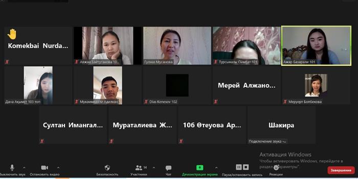 13 апреля 2021 года с 17.00 до 18.15 преподаватель кафедры иностранных языков Мусановой Гулназ Айдаровной, студенты 1 курса и учащиеся 10 и 11 классов IT школы-лицея №24 имени Саттара Ерубаева в г. Шымкент провели онлайн-мероприятие в формате телемоста, посвященное 30-летию Независимости Республики Казахстан. В мероприятии также приняли участие заместитель директора IT школы-лицея Мураталиева Жанар Амановна, классный руководитель 10Б класса, учитель английского языка Бопбекова Меруерт, классный руководитель 11А Есалиева Гаухар Сабитовна.