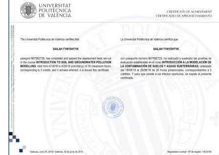 | Баймахан Жансая | Введение в моделирование загрязнения почв и подземных вод | 18.06.2018 –29.06.2018 | Испания, Валенсия | |