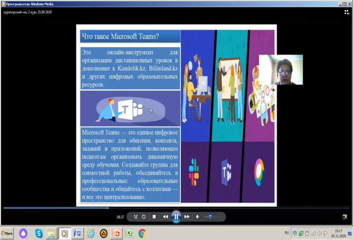 29 сентября 2020 года прошел онлайн семинар, по теме «Технологии дистанционного обучения» со студентами 2 курса факультета международных отношений Казахского Национального Университета имени Аль-Фараби, по специальности «Мировая экономика». Семинар вела руководитель группы Смагулова А.С. В ходе семинара были четко изложены и разъяснены документы, утвержденные администрацией Казахского Национального Университета, их значение, а также дисциплинарные правила между студентом и преподавателем. Во время семинара студенты поделились своими мыслями и получили много информации о дистанционном обучении.